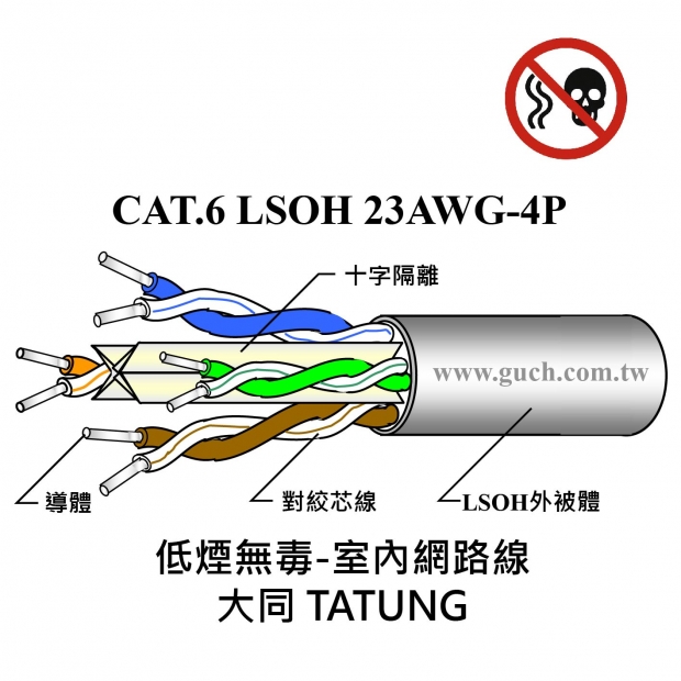 大同 CAT.6 LSOH 外被低煙無毒 1G網路線 305M